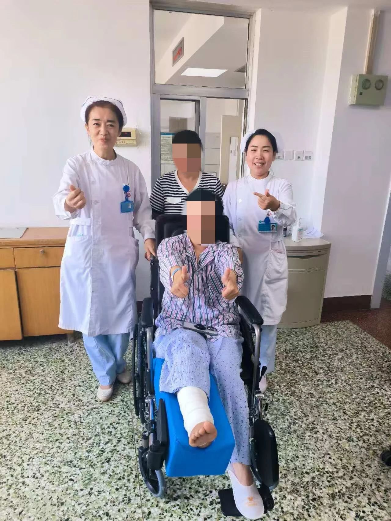 天津患者马女士,术后康复良好,专程跨越千里送来印有“医术精湛除病痛,服务贴心似家人”的锦旗;上海患者胡女士,寄来手写感谢信,信中称:“从急诊到出院,每一步都感受到你们的尊重与关怀” ;本地患者张大爷通过绿色通道快速完成髋部手术,术后在微信群中感慨:“没想到现在医院服务这么贴心,连怎么吃饭、翻身都教得清清楚楚,医生还半夜回复我的咨询,这份责任心让我感动!”
