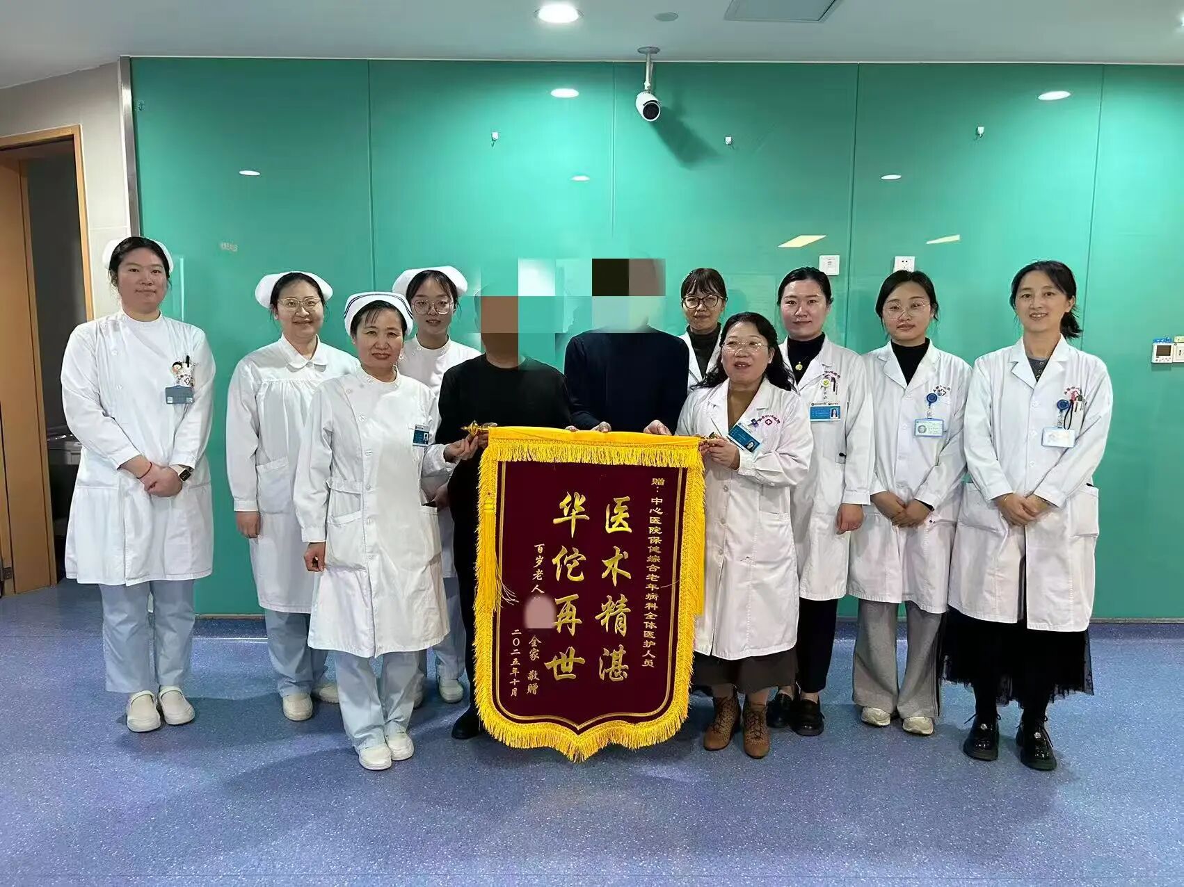 救治过程中,保健综合老年病科始终坚持 “以患者为中心” 的核心理念,多次与家属进行深入、坦诚的沟通,充分尊重他们的知情权和选择权。医护人员关注的不仅仅是“出血的胃”“衰竭的心”,而是如何令这位99岁老人有尊严的生活下去:联合营养科为其量身定制了精准的营养支持方案,护理团队进行了细致入微的生活护理和压疮护理,为患者家属给予了心理的支持和鼓励。经过全力呵护,10月20日,任大爷带着微笑和医护人员送来的鲜花顺利康复出院。