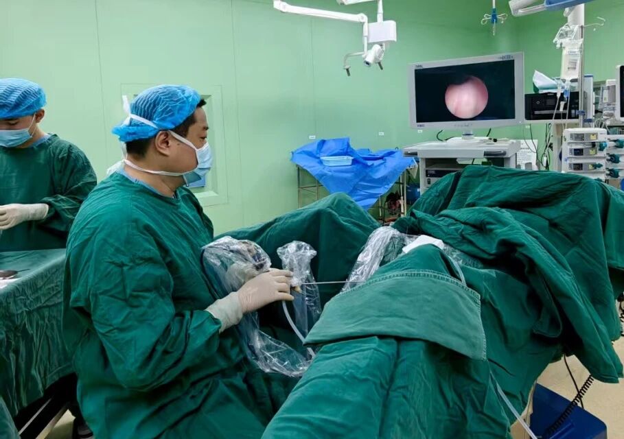 在麻醉科强有力配合下,手术如期进行。泌尿外科团队凭借丰富的经验和娴熟的技巧,成功建立经皮肾通道,以钬激光精准击碎并清除梗阻结石,解除了对肾脏的长期压迫。手术过程流畅顺利,将创伤降至最低,为后续快速康复奠定了坚实的基础。